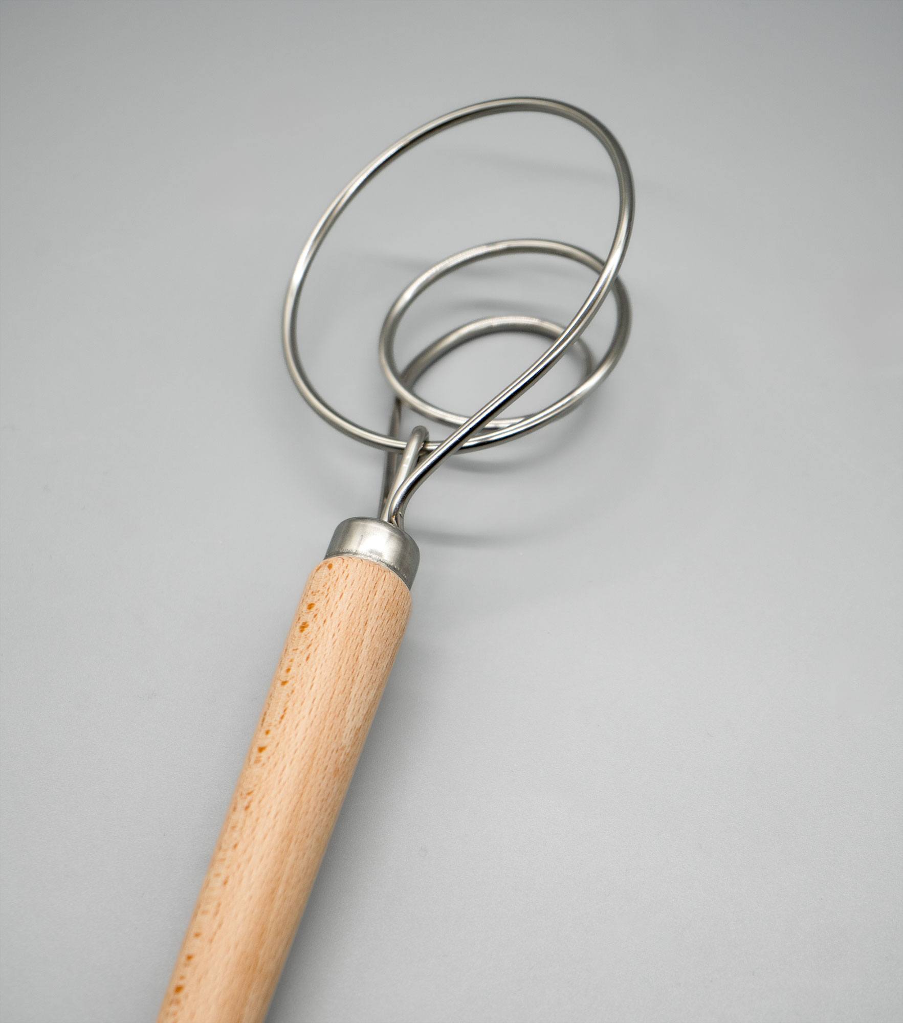 Anders als Weizenteige brauchen Teige mit einem überwiegenden Roggenmehlanteil keine so starke Knetung. Wer also keine Küchenmaschien zu Hause hat, kann Roggenteige mit diesem Teigkneter ganz einfach in der Schüssel mischen.